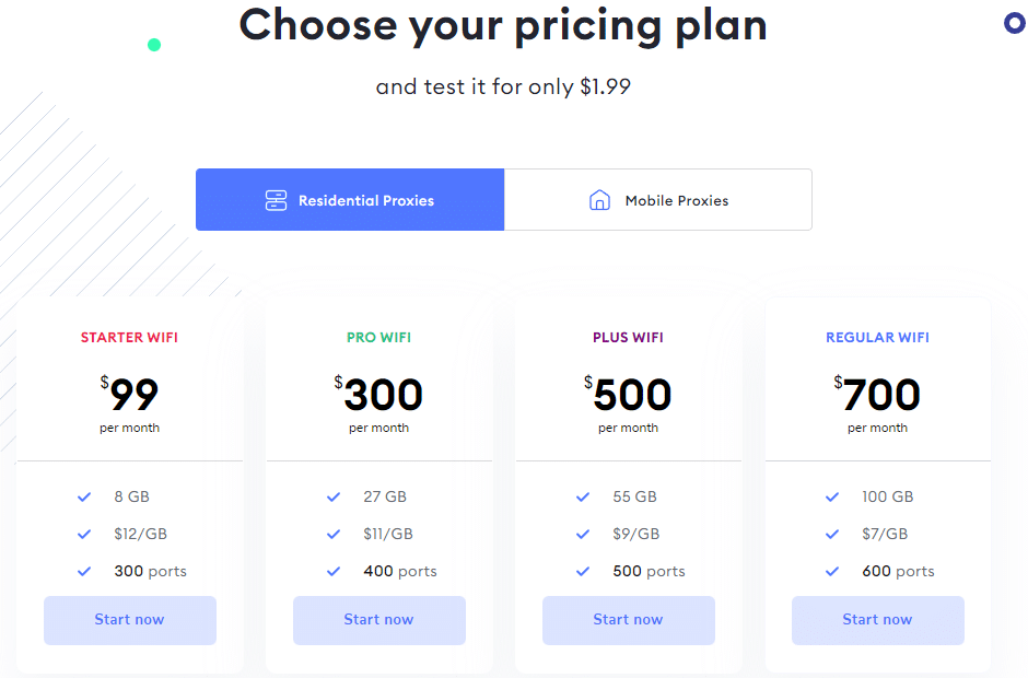 ProxyEmpire’s IP Pool of 9,750,000 IPs is smaller than most of its competitors, but their IPs are quality tested and suitable for every task. Their lowest plan starts at $45 for 3GB and is ideal for companies seeking more affordable options.